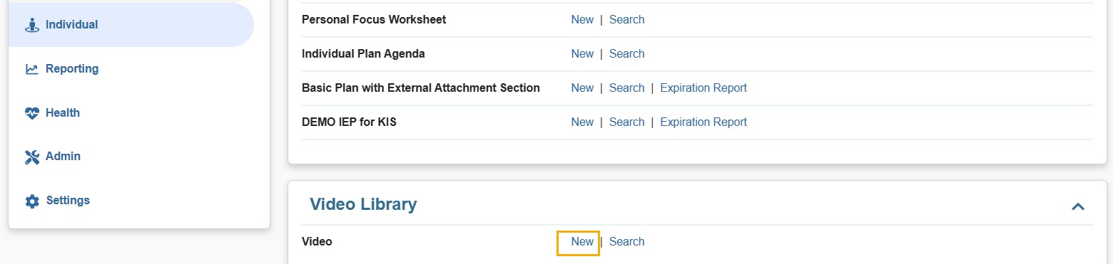 1. Under the Video Library section, click on the New link beside Video.