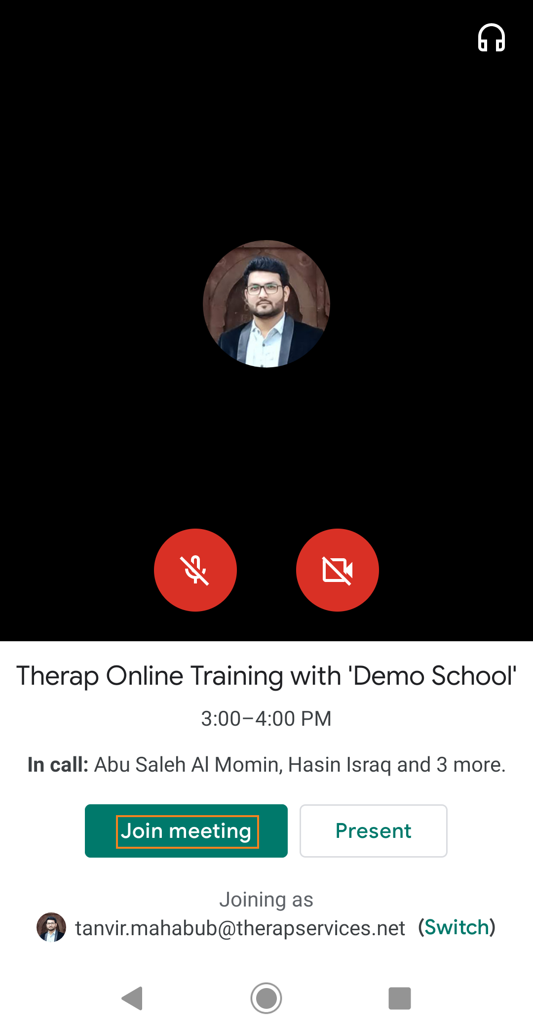 To participate in an online training with the Therap experts, the users might need to use the Google Meet software. Users can join the training by using computers, smartphones or tab and need to have internet connection.