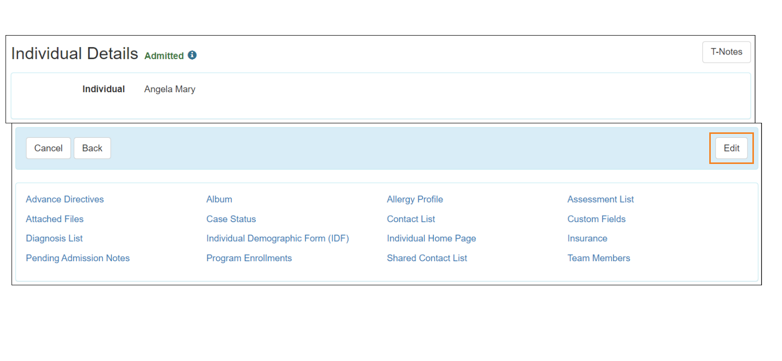 يحتوي نموذج التفاصيل الفردية Individual Details على معلومات مفصلة عن الفرد. تظهر المعلومات المُدخلة في هذا النموذج في نموذج بيانات الطوارئ Emergency Data Form ، وفي Demographic Report، وفي التقارير الأخرى في النظام.