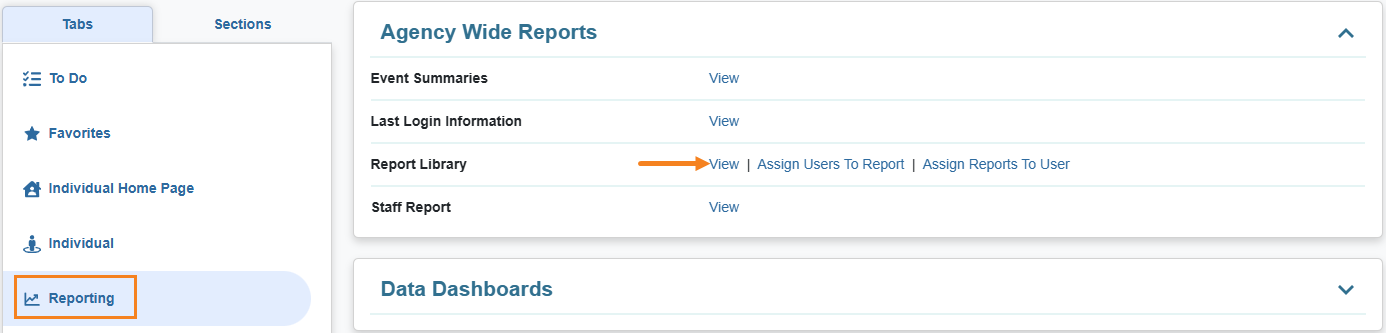 1. انقر فوق الارتباط عرض بجوار خيار مكتبة التقارير في علامة التبويب تقارير الوكالة.