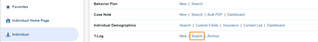 1. I-click ang Search link sa hilera ng T-Log sa Individual tab.
